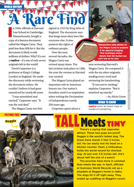 25th August 2025 A Rare Find In 1946, officials at Harvard Law School in Cambridge, Massachusetts, bought a copy of a famous document called the Magna Carta. They paid less than $28 for it. But the document is likely worth millions of dollars. Why? It’s not a replica—it’s one of only seven originals left in the world!
